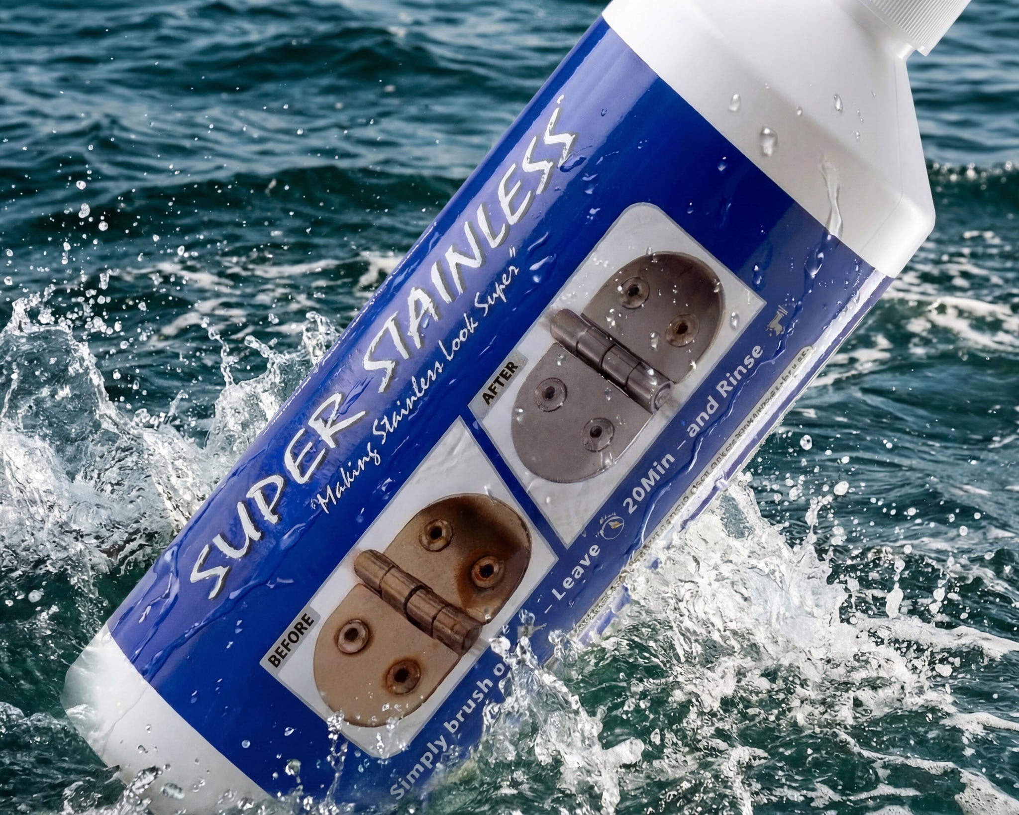 Super Stainless er en spesialutviklet metallrens for rustfritt stål i maritime miljøer. Den fjerner rustflekker, misfarging og overflatekorrosjon fra beslag og detaljer i rustfritt stål, samtidig som den bidrar til å gjenopprette stålets naturlige beskyttelse.
